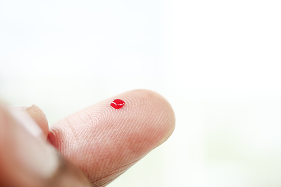 The professional will perform a simple and minimally invasive finger-prick to collect a small blood sample.